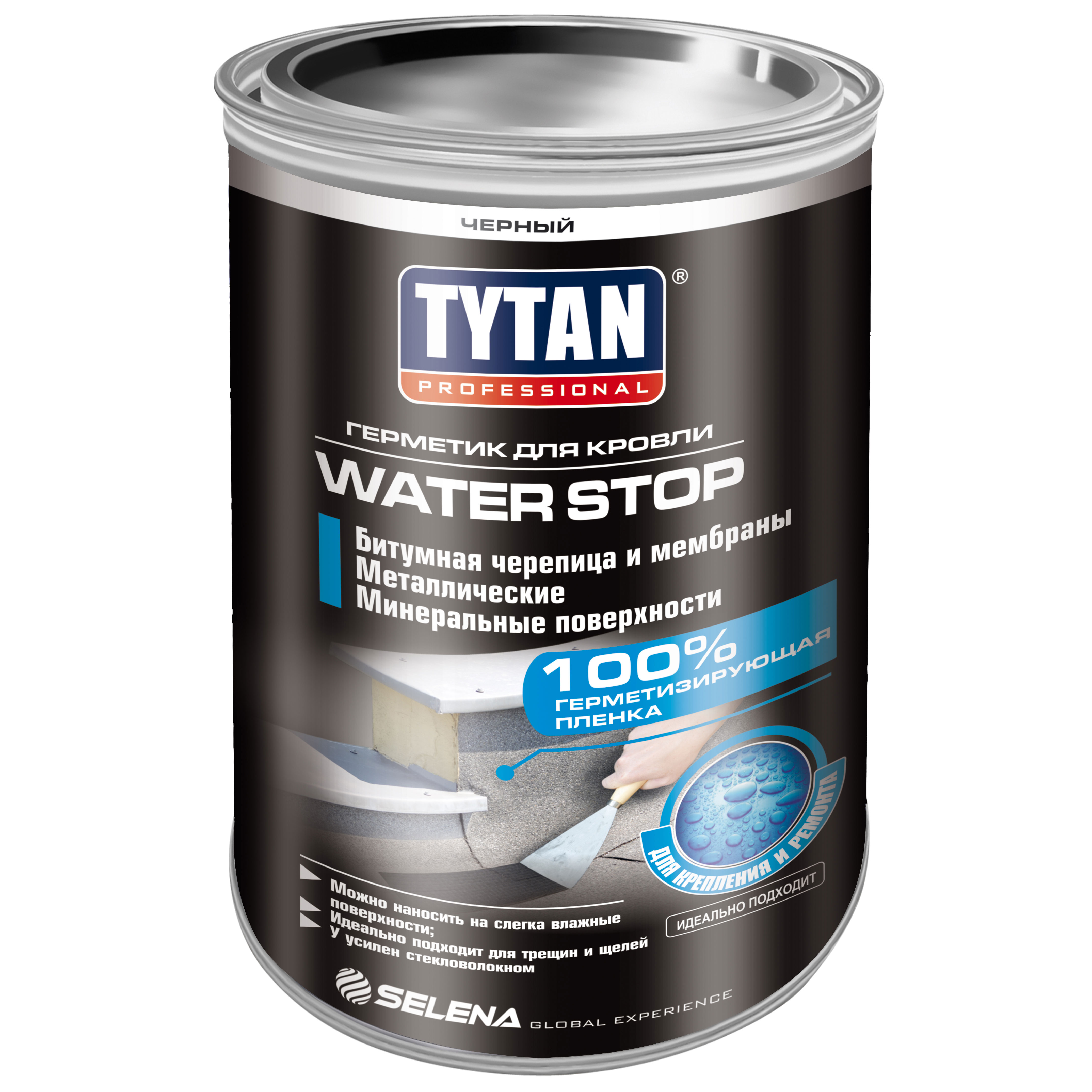 TYTAN Professional Герметик для кровли WATER STOP — Битумная паста, усиленная волокнами, предназначена для ремонта трещин и протечек в кровле и водосточных желобах при любых погодных условиях: заморозках, дожде, тумане.