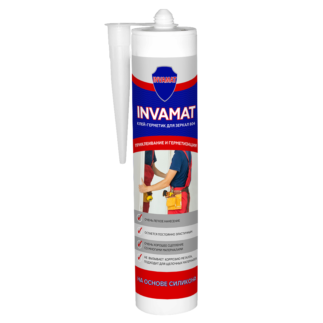 Клей-герметик для зеркал INVAMAT 804 это высококачественный, нейтральный, эластичный, однокомпонентный клей-герметик на основе силикона.