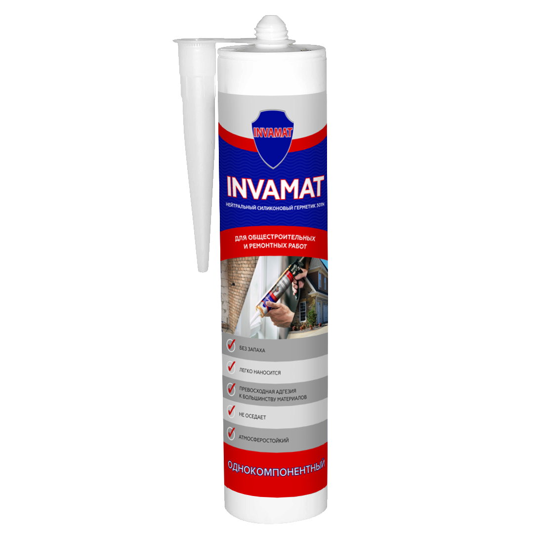 Силиконовый герметик INVAMAT 301N нейтральный обладает отличной адгезией без использования праймера с большинством непористых поверхностей, например, стеклом, плиткой, керамикой, эмалью, кафельной плиткой, такими металлами как: алюминий, сталь, цинк и медь, с пропитанным, лакированным или окрашенным деревом; с щелочными субстратами и пористыми поверхностями, такими как бетон, известь, каменная или кирпичная кладка; со многими видами пластмассы. Пользователи также могут проводить собственные эксперименты благодаря многообразию материалов. В некоторых случаях качество адгезии может быть улучшено при предварительной обработке поверхности праймером.