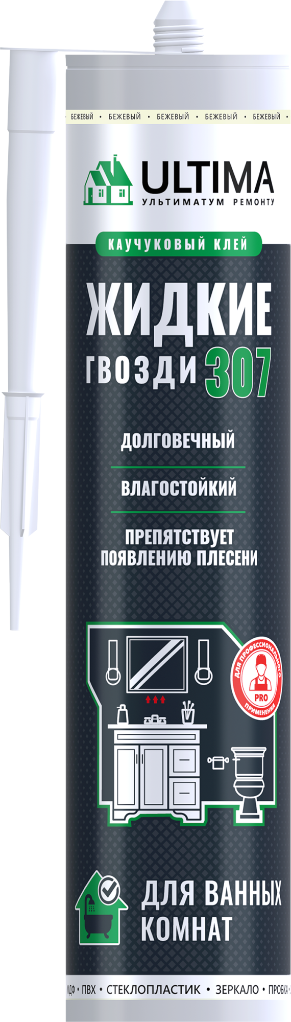 ULTIMA 307 - специальный клей на основе синтетических каучуков для крепления различных элементов при отделке помещений с повышенным уровнем влажности, таких как: ванные комнаты, душевые кабины, кухни, бассейны, зимние сады и т.д.