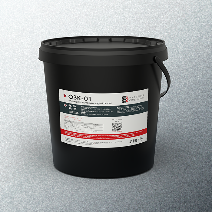 - Огнезащитная краска ОЗК-01 (R45, R60, R90, R120) используется для качественного повышения пожарной безопасности металлоконструкций. Огнезащитные краски и составы предназначены для замедления прогревания металлической конструкции при пожаре и повышения его огнестойкости.