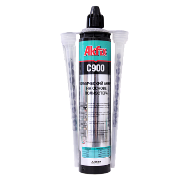 Akfix С900 представляет собой двухкомпонентный полиэстеровый химический анкер для применения в широком спектре строительных работ. Предназначен для тяжелых условий эксплуатации в бетоне без трещин и кирпичной кладке, а также во многих других базовых материалах, таких как газобетон, легкие полнотелые или пустотелые бетонные блоки или силикатный кирпич.