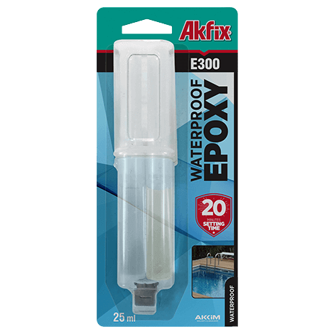 AKFIX E300 - двухкомпонентный, не содержащий растворителей, состав из смолы и отвердителя, водостойкий после застывания. Может применяться непосредственно в воде.
