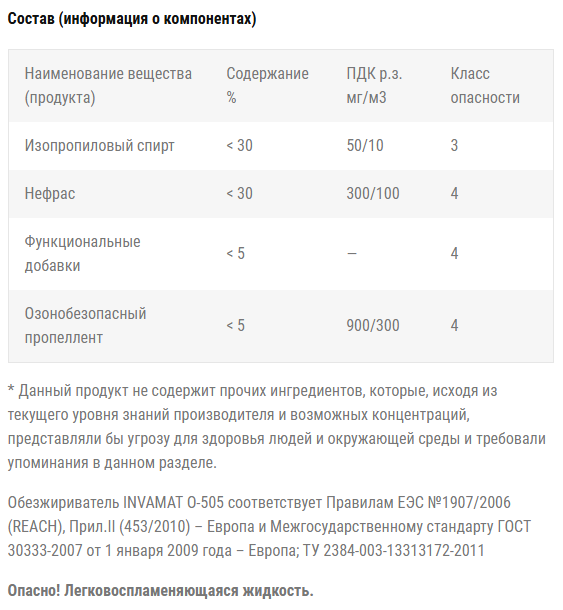 INVAMAT O-505 обезжириватель - быстродействующее средство для обезжиривания любого вида поверхности: металлической, пластиковой, стеклянной, деревянной, керамической и др.