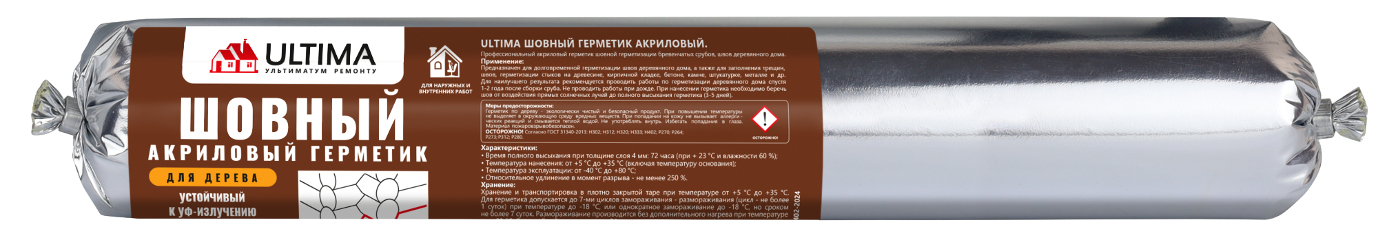 Шовный герметик акриловый для дерева ULTIMA — Профессиональный акриловый герметик с отличной адгезией к дереву, кирпичу,бетону, натуральному камню, штукатурке, металлу и т.д.