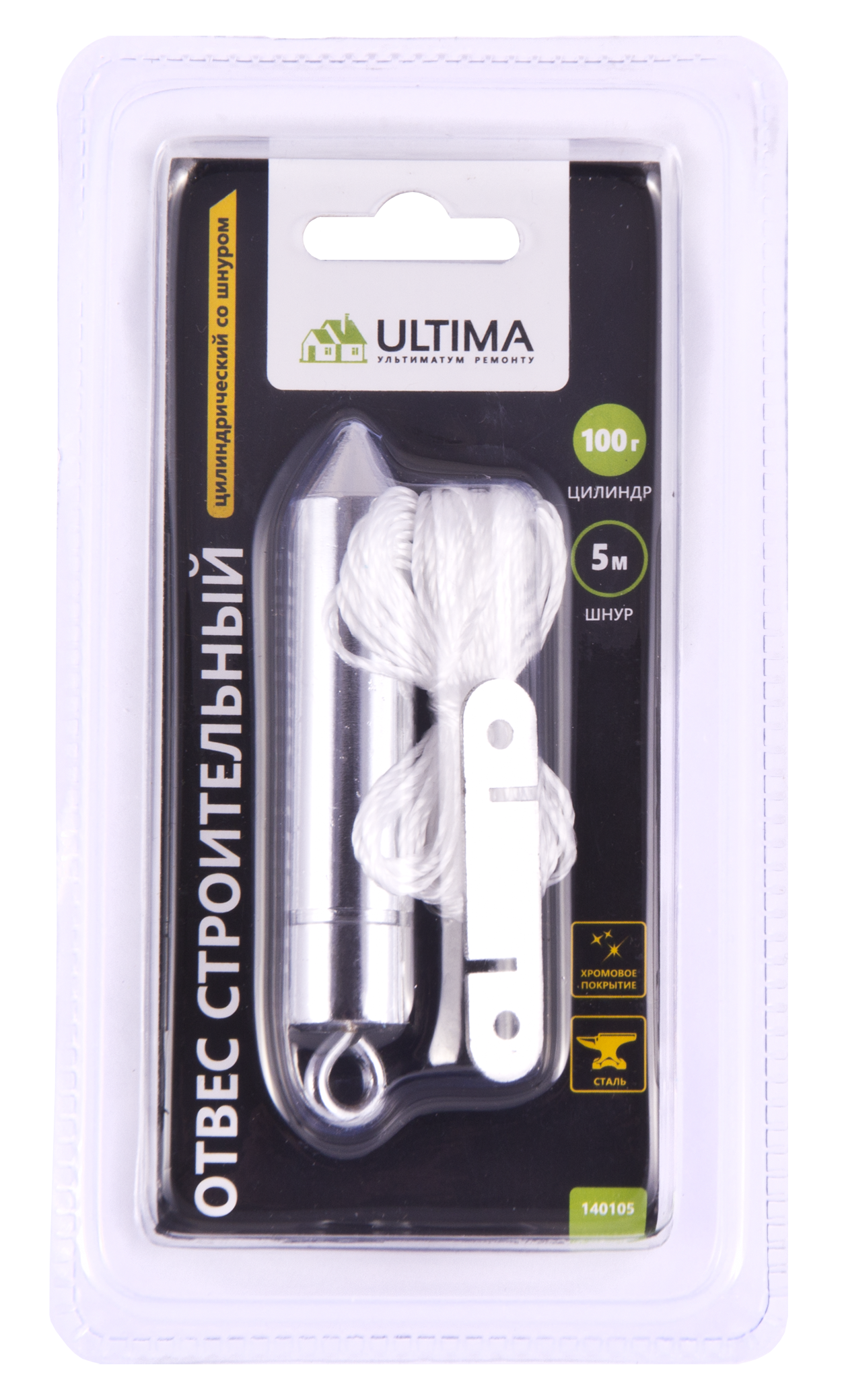 Отвес строительный, цилиндр 100 г, шнур 5 м (1 уп-12 шт, 1 кор-10 уп)