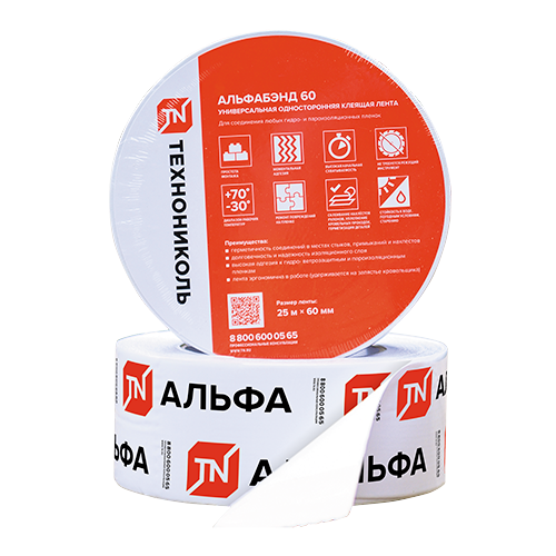 ТЕХНОНИКОЛЬ Самоклеящаяся лента АЛЬФАБЭНД 60 (25м х 60мм) — Функциональный материал из полиэтилена высокой плотности, армирующей сетки, акрилового адгезива и бумажной разделительной лентой. Обладает высокими клеящими способностями, превосходной комфортностью и эластичностью, стоек к старению, перепадам температуры, влажности и к большому количеству химических веществ.